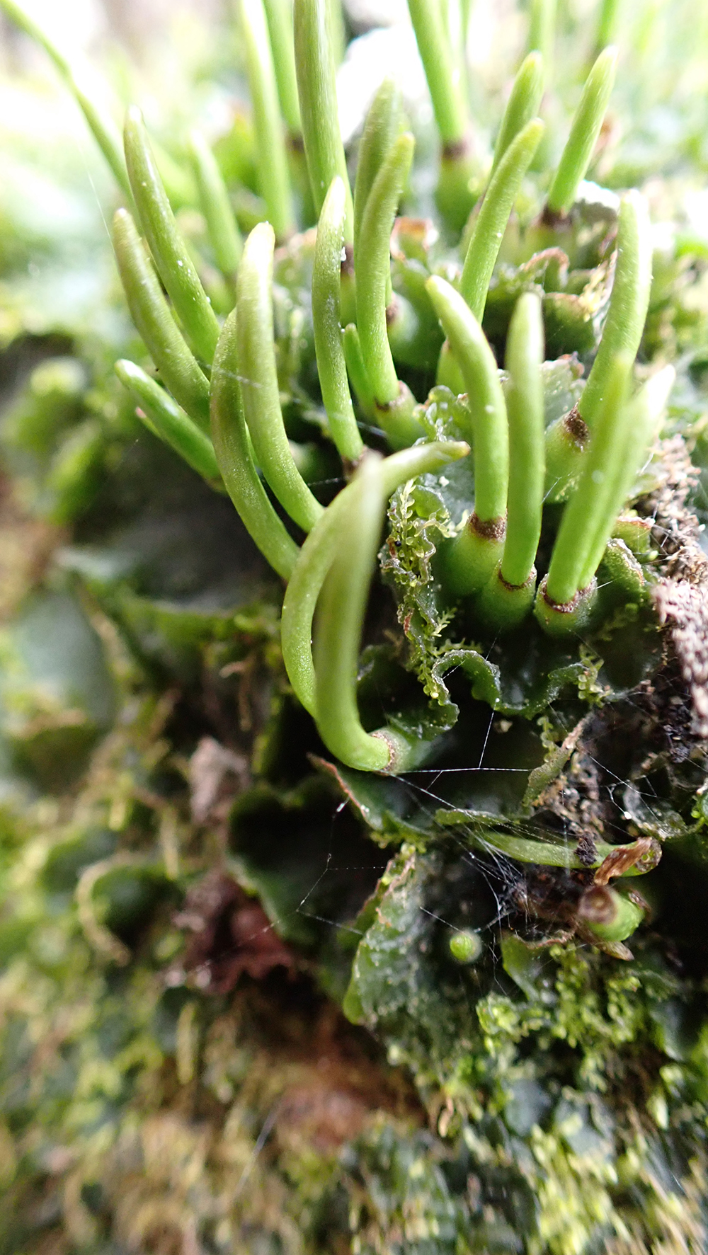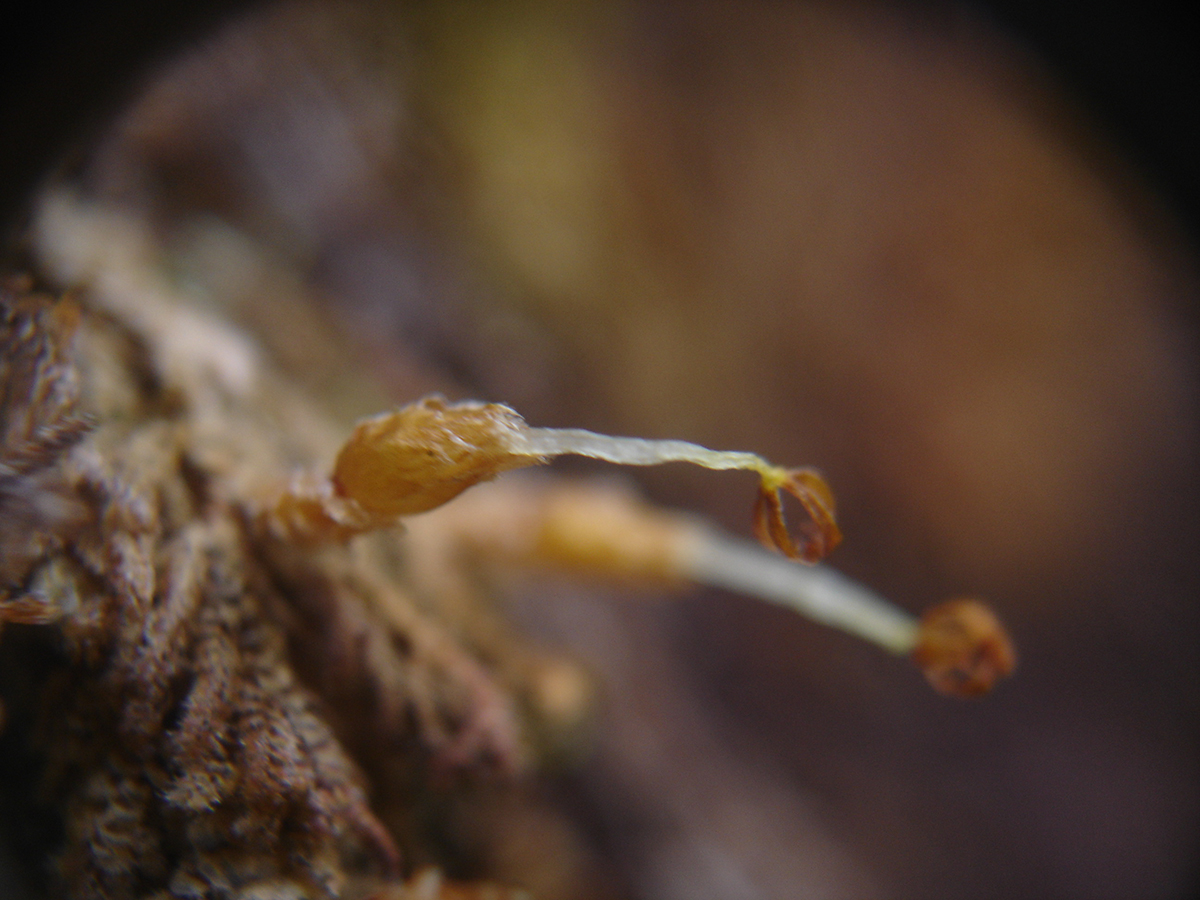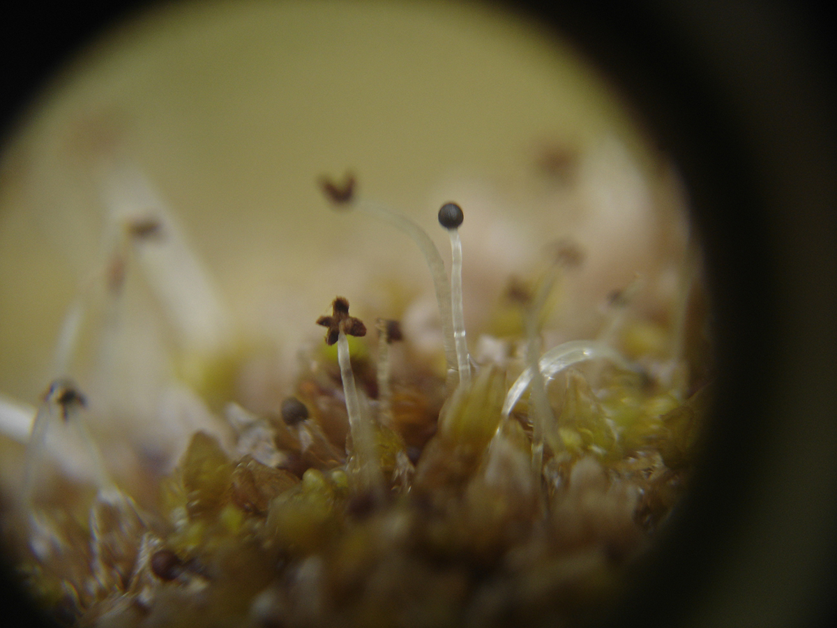 Cuando se encuentran plantas fértiles, es decir, con esporofito (fase diploide con estructuras capsulares en donde se producen las esporas), no es complicado distinguir entre los tres grupos. Las hepáticas tienen esporofitos formados por una cápsula esférica que en la madurez se abre longitudinalmente mediante cuatro aberturas longitudinales. Los musgos tienen cápsulas de diversa morfología (esféricas, elipsoides, lineares, etc.), que en su mayoría se abren apicalmente por una tapita (opérculo) y se encuentran coronadas por un anillo de dientes articulados que facilitan la dispersión de las esporas. Tanto en las hepáticas como en los musgos, las cápsulas se encuentran frecuentemente sostenidas en un pie de largo variable. Finalmente, los antocerotes tienen esporofitos alargados, con forma de cuerno, que se abren en valvas longitudinales en la madurez.